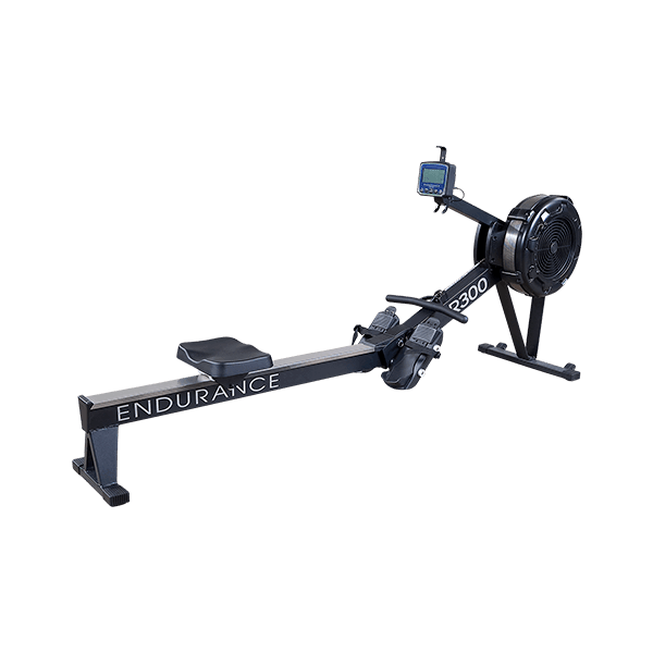Compare to Concep2 Rower Model D. The Endurance by Body-Solid R300 Indoor Rower delivers an effective low-impact cardio and total body workout. Not only does the rowing movement provide users with high-intensity calorie-burning cardio but works quadriceps, hamstrings, abdominals, obliques, lats, biceps, triceps, hip flexors and more. User-controlled air resistance puts users in full control for a balanced and coordinated workout. The R300 is a self-generating machine eliminating power requirements for peak energy efficiency in home or commercial settings. A precision-engineered flywheel design minimizes noise. Nickel-plated chain offers unmatched durability in even the most intense environments. A textured, ergonomic handle allows users to row with natural hand and arm positions while fully-adjustable footrests provide users a safe and comfortable workout on the R300 Indoor Rower. A convenient cell phone holder can be used for both entertaining and workout tracking purposes. The interactive console reports on time, heart rate, calories, paddle width, stroke rate, distance cycle and watts and is Polar compatible. 8 different exercise programs -Quick Start, Distance, Time, Calories, Game, Intervals (20/10. 10/20. 10/10) - are also built into the console. Ideal for home, commercial and group workout settings. Rowers have seen a resurgence of popularity in recent years driven in part by their usage in cross training and other hot exercise programs. Push your body to the absolute limit with intense movements designed to test your cardio endurance and provide unmatched upper body engagement.